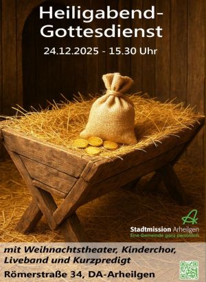 „Micha!!!“, brüllt eine wütende Stimme. Warum Michas Vater sauer auf ihn ist und was ein Säckchen voll Goldmünzen mit Weihnachten zu tun hat, wird an Heiligabend in der Stadtmission Arheilgen zu sehen sein. Freut euch auf das unterhaltsame Weihnachtstheater „Chaos im Stall“, den Kinderchor "SingKids", Weihnachtslieder mit Liveband und eine Kurzpredigt.